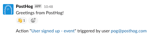 This update allows you to send push notifications to Slack when an Action is triggered. Our docs show you how you can integrate Slack with your own PostHog instance.