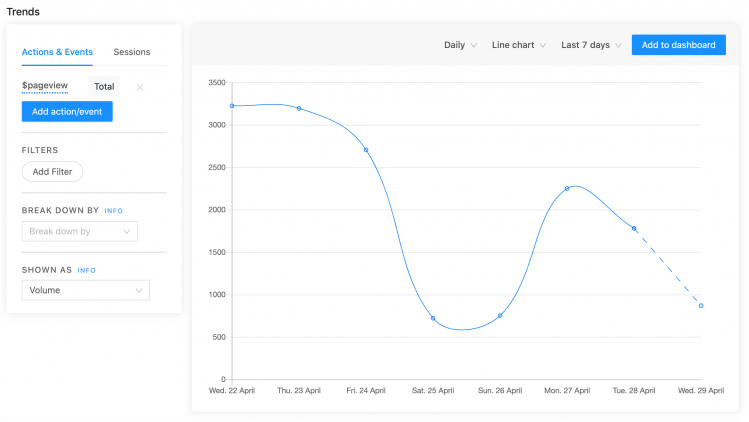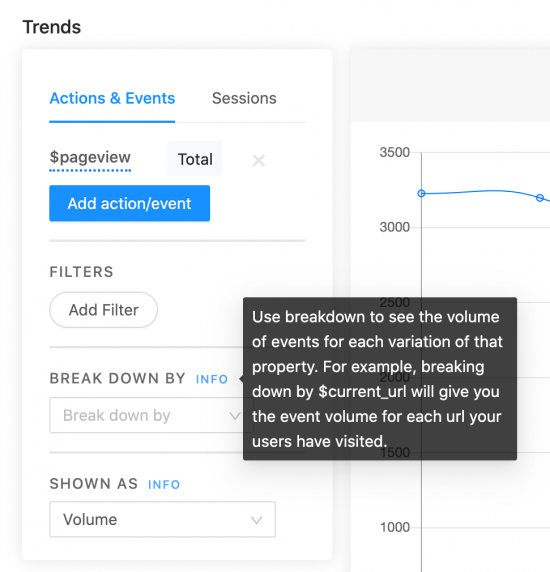 Moving the bar to the left allows users to easily engage with the Trends graphs as they filter by Actions and Events.
